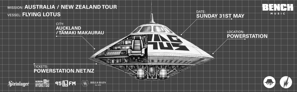 Grammy Award-winning artist Flying Lotus (Steve Ellison) returns to Aotearoa this early winter with his signature fusion of hip-hop, jazz, electronic beats, and experimental sound. Over a career spanning more than a decade, he has released critically acclaimed albums and collaborated with Kendrick Lamar, Solange, Thom Yorke, and Herbie Hancock. He is also the founder of the influential label Brainfeeder.